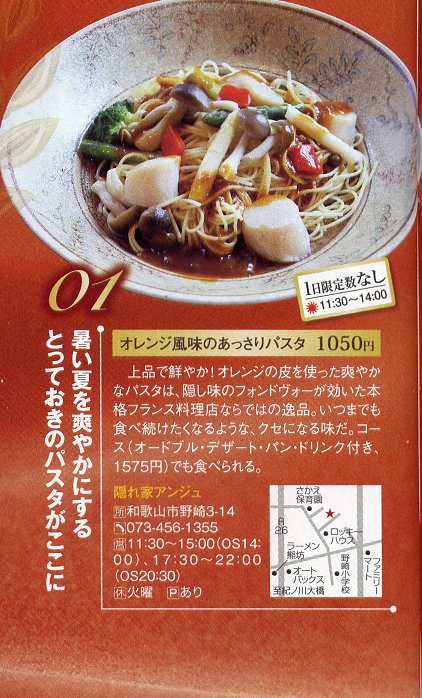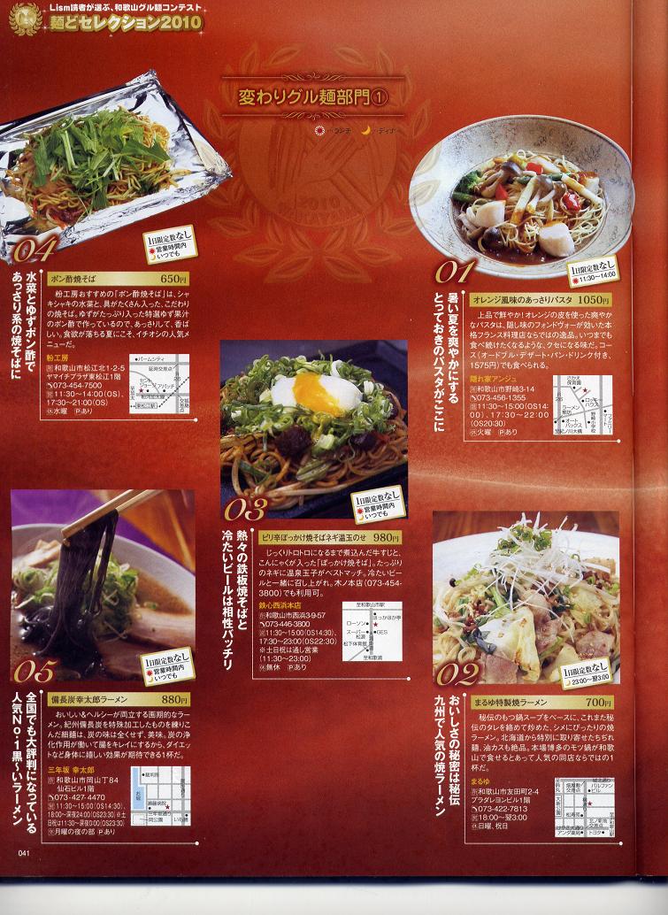 和歌山のフリータウン誌「Lism」で、麺どセレクションという企画があります。変わりグル麺部門に、アンジュのオレンジ風味のあっさりパスタがノミネートされました。